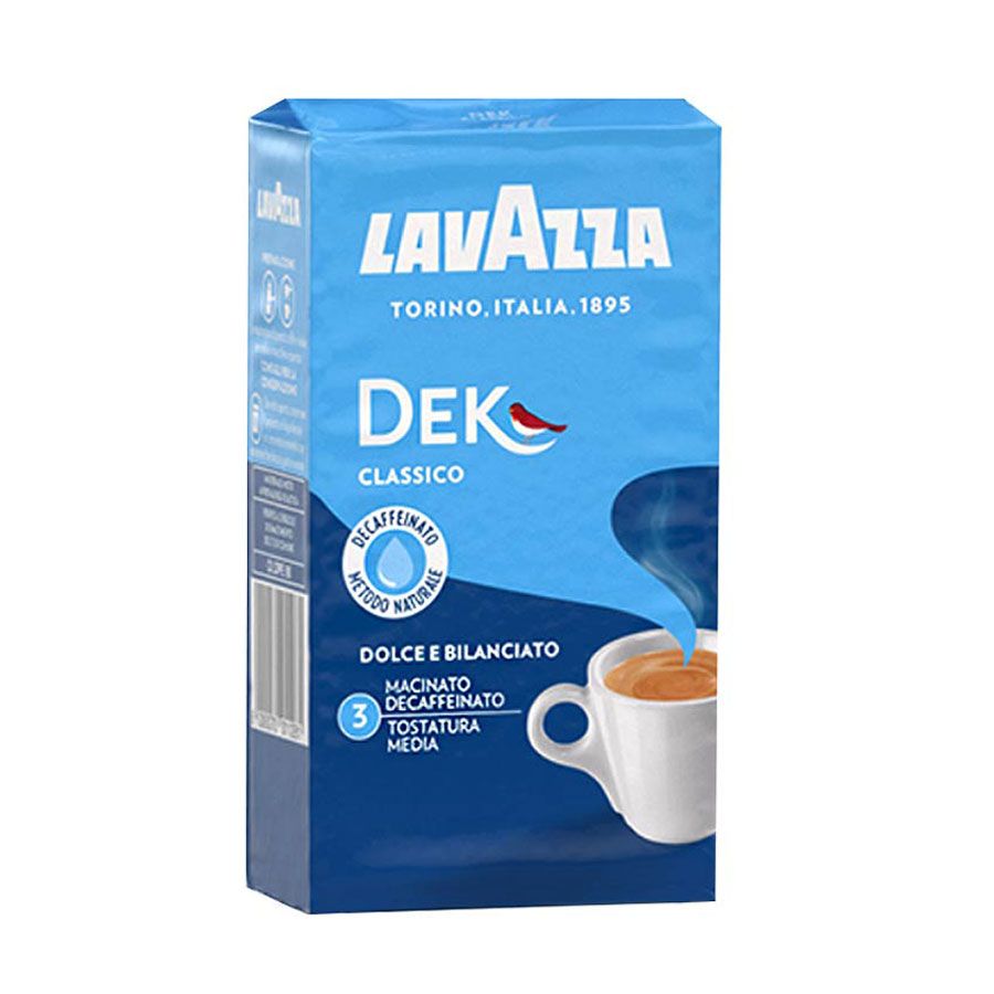 Una mezcla aromática y refinada de selectos granos de café Arábica y Robusta, caracterizada por dulces toques de almendra y chocolate con leche, con notas de frutos secos. Café Decafeinado Molido Lavazza.